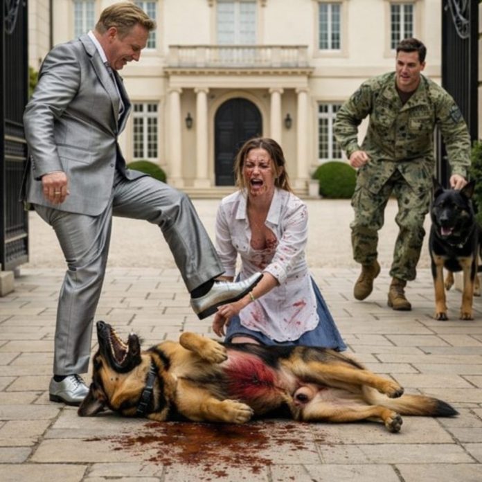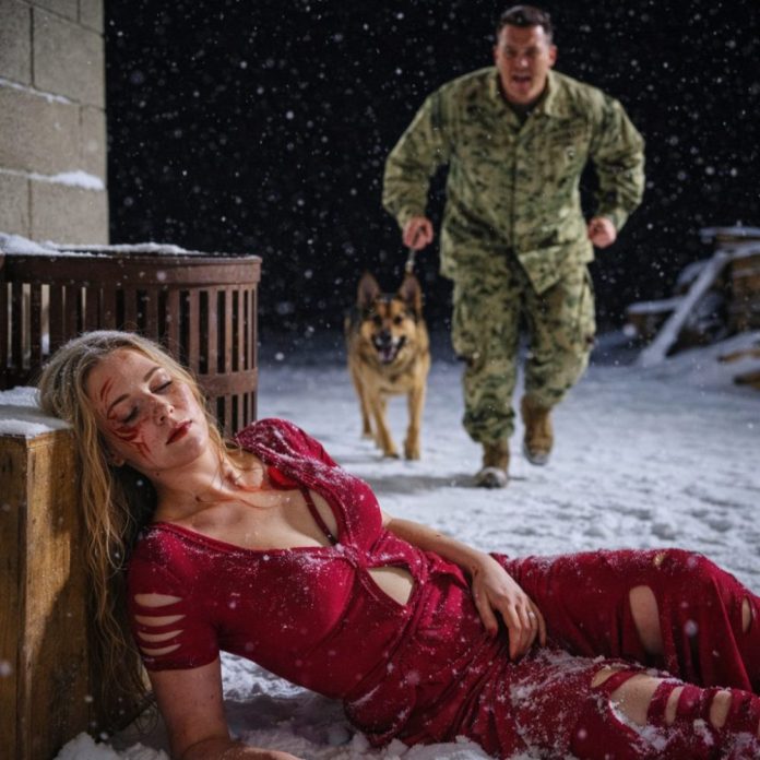 Miles up a ridge line, a cabin light flickered behind frosted windows. Logan Pierce, a Navy SEAL on leave, hadn’t slept right since Syria. He carried survivor’s guilt the way others carried keys—always there, always loud when the world went quiet. His German Shepherd, K9 Slate, was older but sharp, scars faint under thick fur, the kind of dog that had learned war and then never truly forgot it.