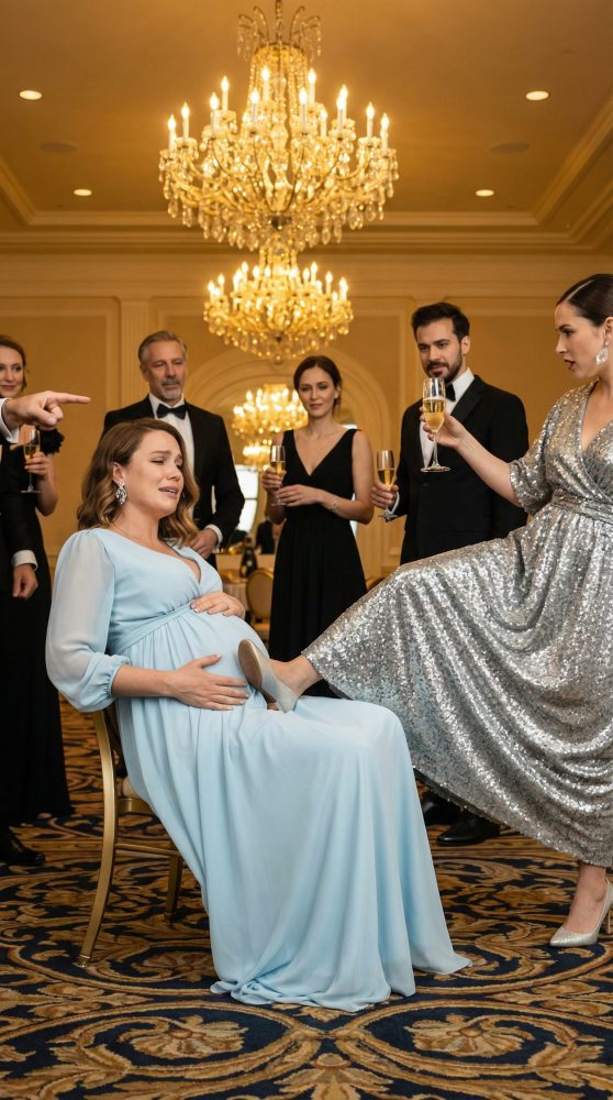 The officer’s gaze moved to the shattered wineglass, then to Elena’s pale face, then to Kylie’s heel positioned just behind the chair leg—exactly where a kick would land. “Ma’am,” the officer said, “step away from her.”
