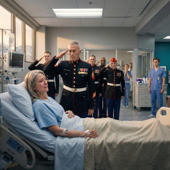 Eleven Marines entered the hallway in dress uniforms like a tide of discipline. They didn’t shout. They didn’t demand access. They stood at attention outside Erin’s room and waited until the charge nurse—shaken—confirmed visiting protocols.