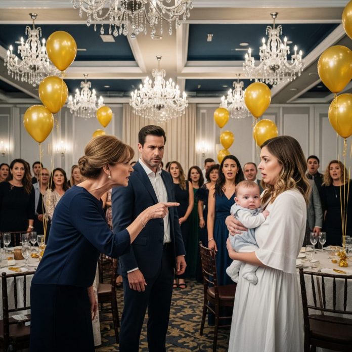 The laughter started—soft at first, then louder. Guests whispered, covering their mouths while smirking at her. Margaret’s eyes sparkled with triumph. “Maybe we should ask who the real father is, Ella.”