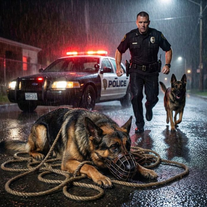 Rook lunged, fast and precise, cutting the man’s path without biting—forcing him to halt. The man stumbled back, swore, then reached toward his pocket.