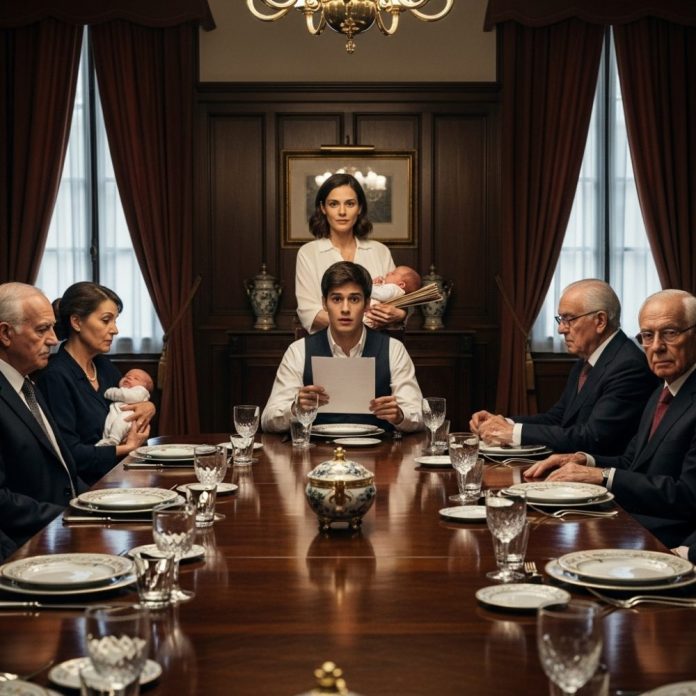 Las conversaciones se apagaron una a una. El roce de su silla contra el suelo sonó más fuerte de lo normal. Tomó a Ava con cuidado y la dejó en brazos de su suegra, cuya sonrisa se desdibujó en confusión.