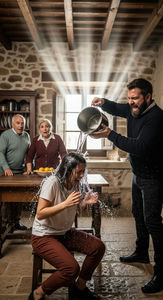 La bofetada llegó antes que las palabras. Un golpe seco, humillante, que resonó más fuerte por el silencio que lo siguió. Leonora sintió el ardor en la mejilla izquierda mientras el plato que llevaba en la mano caía al suelo de su propio salón, hecho añicos. Durante un segundo, nadie se movió.