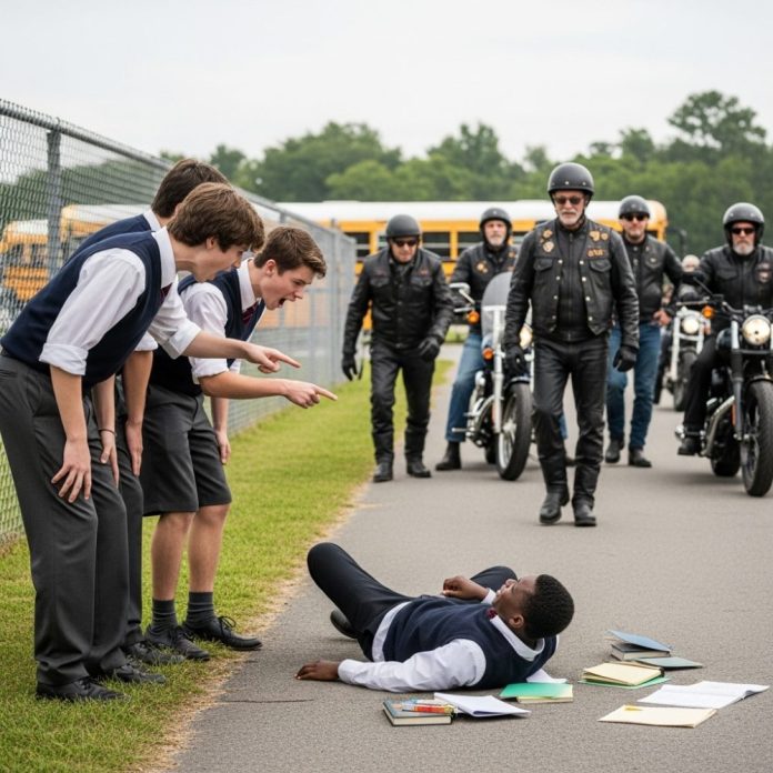 Lily Parker’s knees scraped the concrete as she landed hard outside Dalton’s Grocery. The October wind slapped her thin cheeks, but nothing stung as much as the humiliation. A crushed box of milk rolled toward the gutter, its contents leaking like a slow, white tear.
