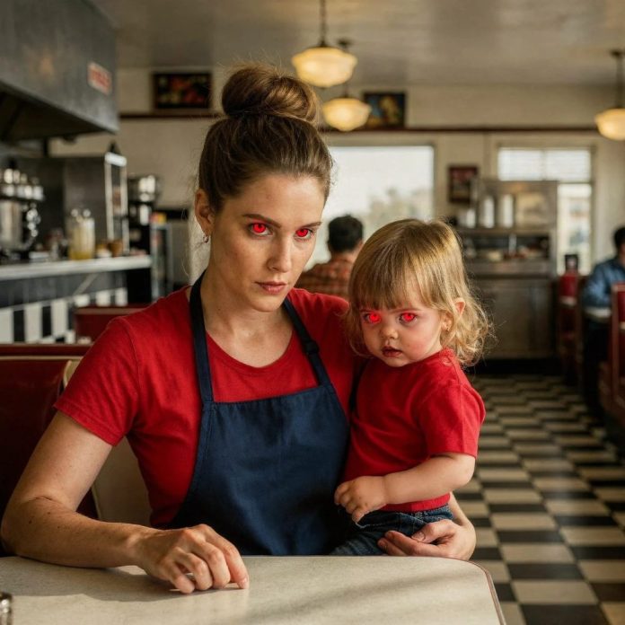 That night, the diner was busier than usual. A few families. A couple truckers. Two men at the counter who had been drinking too long, laughing too loudly, leaning too close to the waitress whenever she tried to step away.